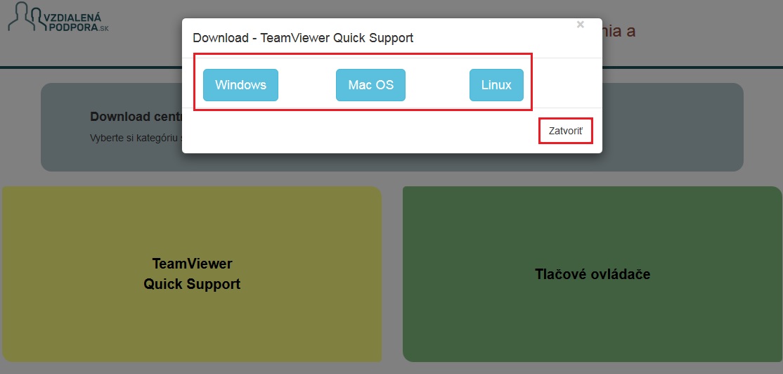 Program TeamViewer si môžete stiahnuť na našej stránke v časti Na stiahnutie. Kliknite na tlačítko TeamViewer Quick Support.