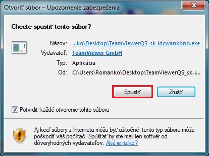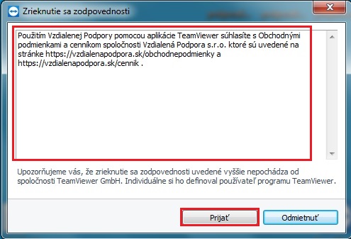 Pre spustenie programu je potrebný Váš súhlas s podmienkami spoločnosti Vzdialena podpora s.r.o. s poskytnutím vzdialej podpory.